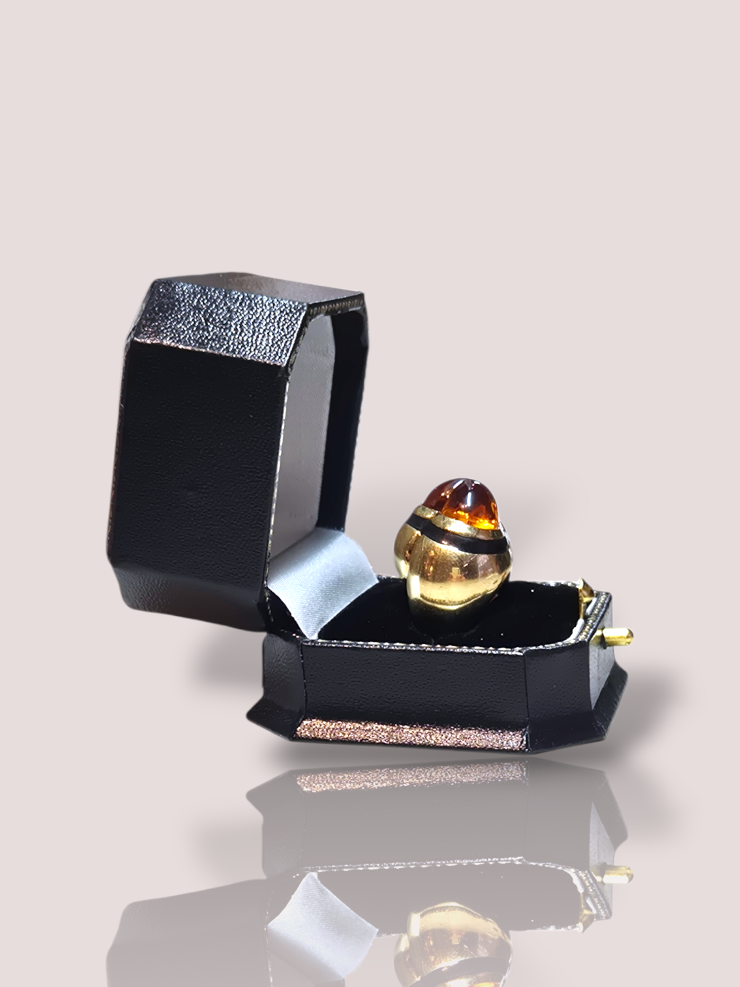 Deze prachtige vintage jaren 70 18k geel gouden ring met citrien, is een echt juweeltje ontworpen door de ontwerper van de juwelen van Christian Dior. Het combineert een tijdloze vintage stijl met de warme, opvallende schoonheid van citrien. Draag het als een statementstuk om een elegante outfit te completeren, of voor een vleugje retro flair bij dagelijkse kleding.