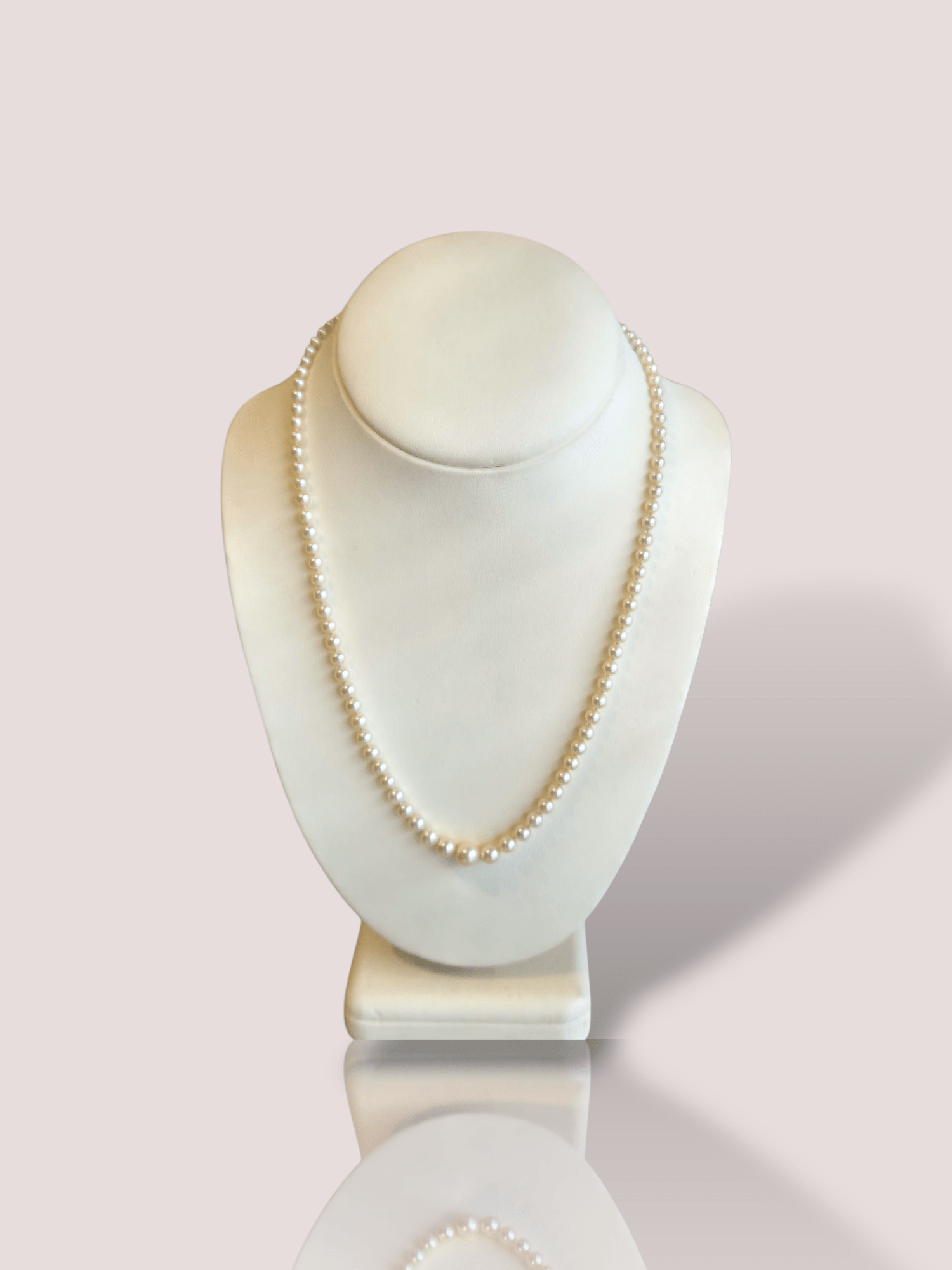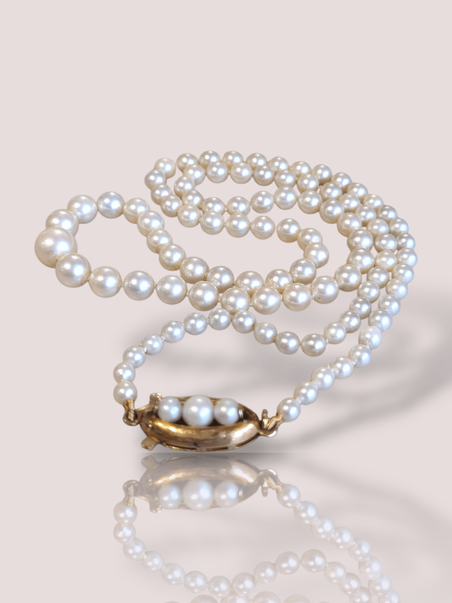 Dit prachtige vintage zoutwater parel collier wordt geleverd met een elegant 14k gouden slot. Als een juweel van tijdloze schoonheid is het de perfecte aanvulling op elke outfit. Draag het bij formele gelegenheden of om een alledaagse look verfijnd te maken. Subtiel en stijlvol voor elke gelegenheid.